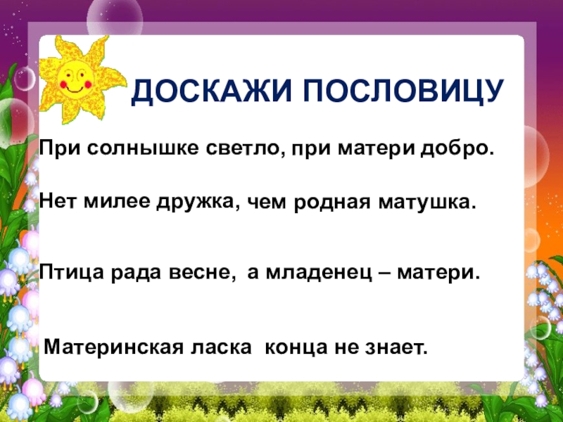 ДОСКАЖИ ПОСЛОВИЦУ