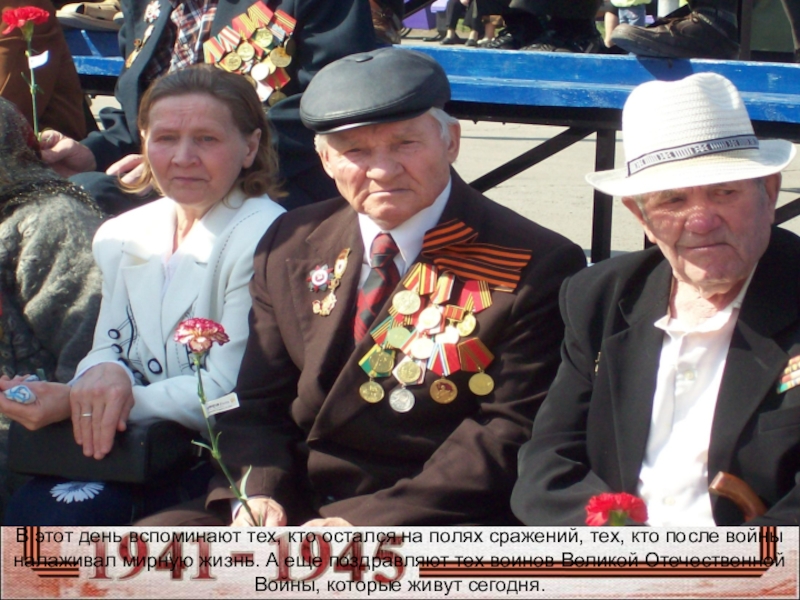 кто после войны налаживал мирную жизнь. А еще поздравляют тех воинов Великой Отечественной Войны, которые живут сегодня.