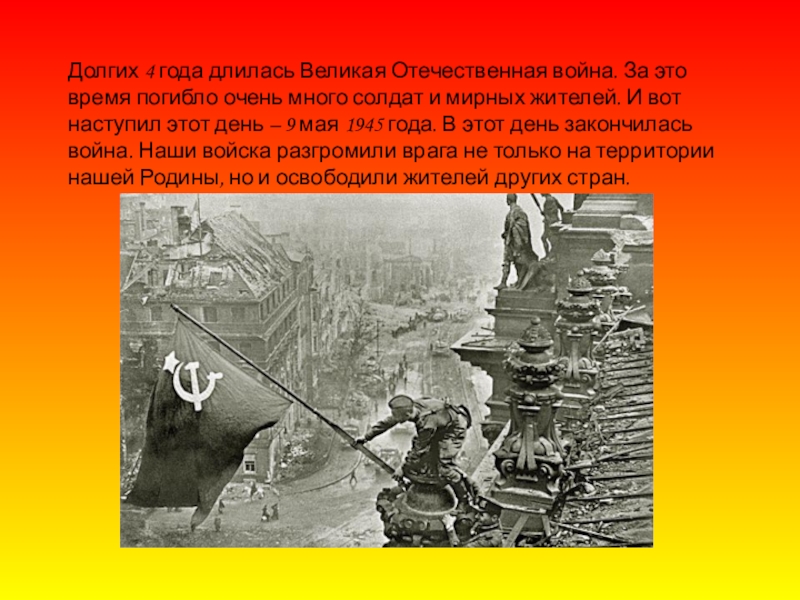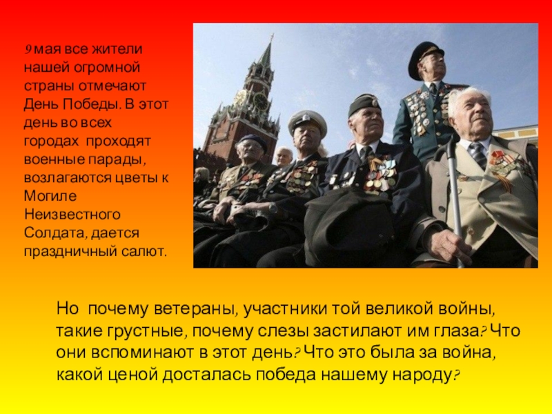 Но почему ветераны, участники той великой войны, такие грустные, почему слезы застилают им глаза? Что они вспоминают в этот день? Что это была за война, какой ценой досталась победа нашему народу?