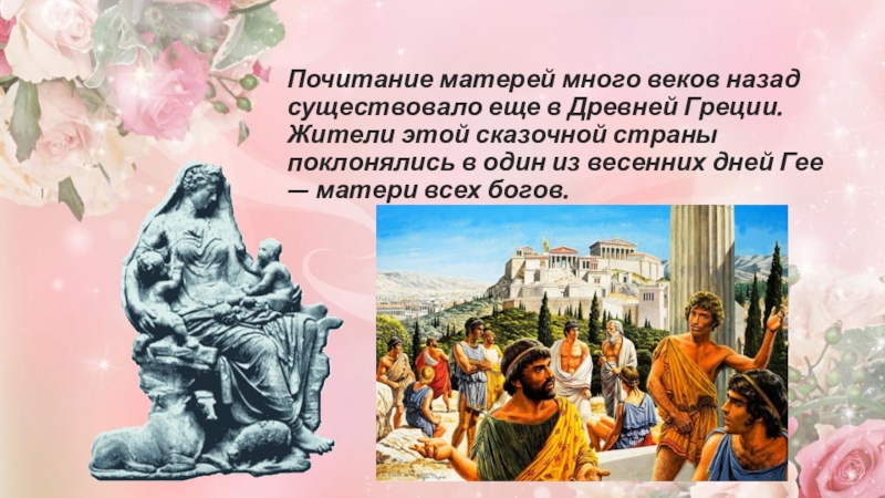 Почитание матерей много веков назад существовало еще в Древней Греции. Жители этой сказочной страны поклонялись в