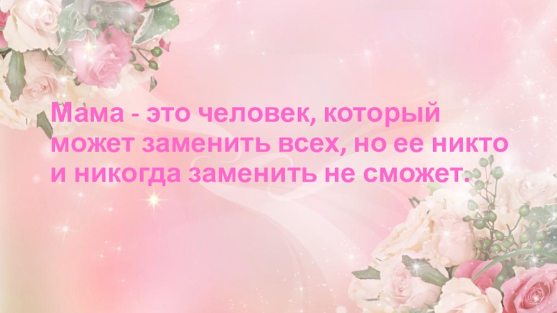 Мама - это человек, который может заменить всех, но ее никто и никогда заменить не сможет.