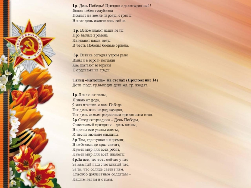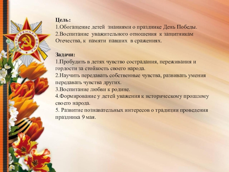 5. Развитие познавательных интересов о традиции проведения праздника 9 мая.