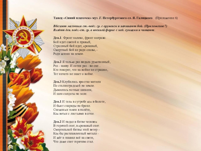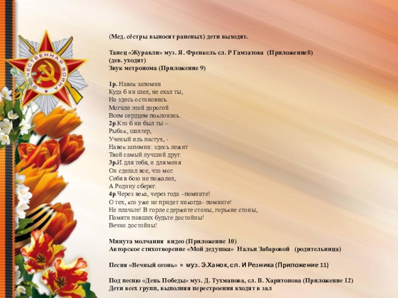 Песня «Вечный огонь» » муз. Э.Ханок, сл. И Резника (Приложение 11)