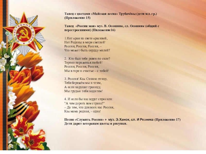 «Россия моя» муз. В. Осошник, сл. Осошник (общий с перестроениями) (Пиложение16)