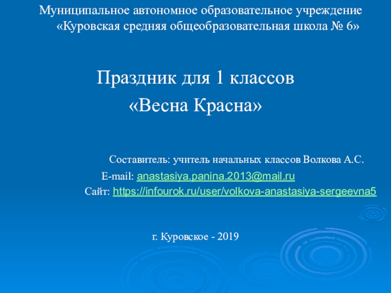 Выполнила учитель начальных классов МАОУ «Куровская СОШ № 6» Волкова Анастасия Сергеевна