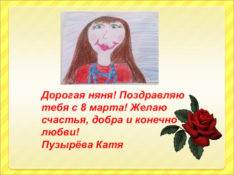 Слайд 48Дорогая няня! Поздравляю тебя с 8 марта! Желаю счастья, добра и