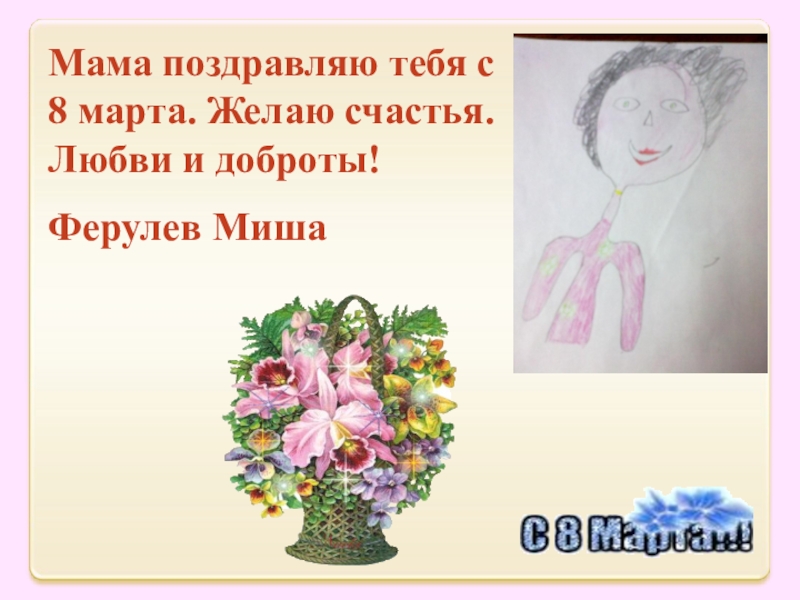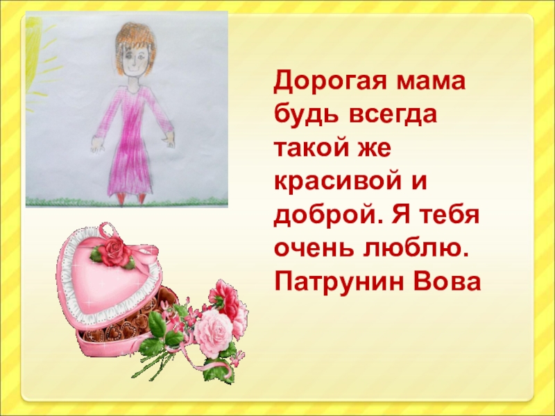 Слайд 45Моя мама самая красивая на земле. Она добрая. Я ей желаю