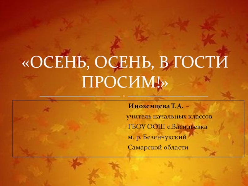 «ОСЕНЬ, ОСЕНЬ, В ГОСТИ ПРОСИМ!»