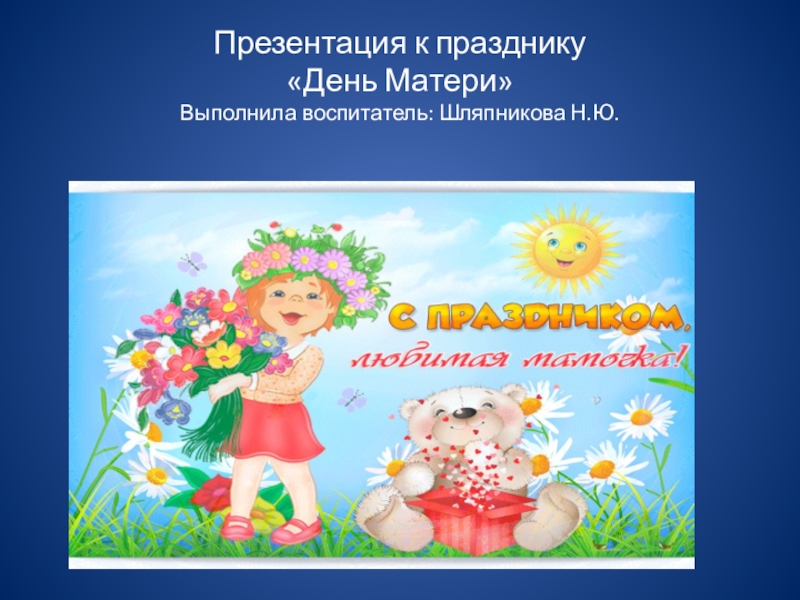 Слайд 1Презентация к празднику «День Матери» Выполнила воспитатель: Шляпникова Н.Ю.