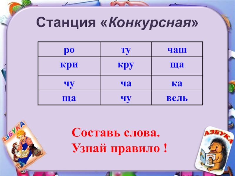 Станция «Конкурсная»Составь слова.Узнай правило !