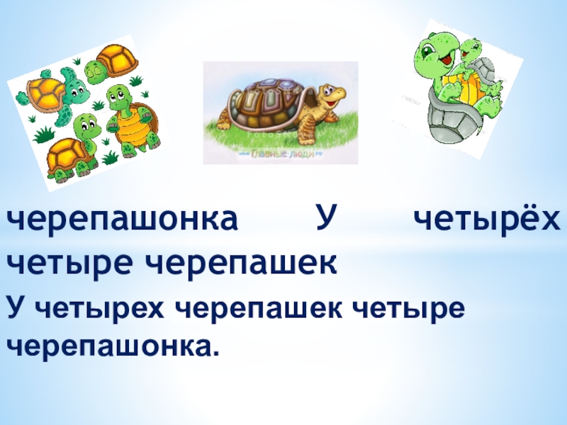 черепашонка У четырёх четыре черепашек У четырех черепашек четыре черепашонка.