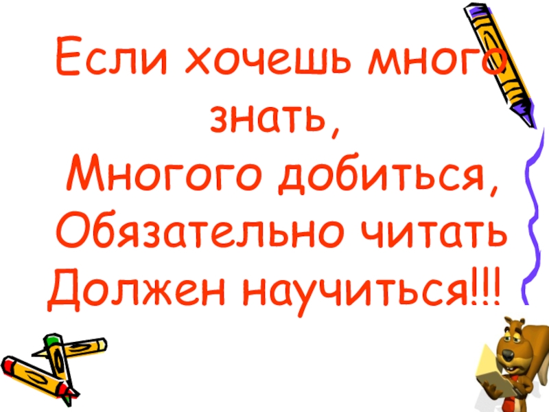 Слайд 14 Если хочешь много знать, Многого добиться, Обязательно читать Должен научиться!!!