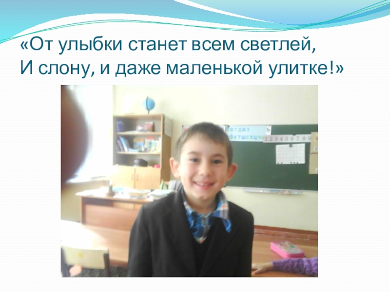 Слайд 18«От улыбки станет всем светлей, И слону, и даже маленькой улитке!»