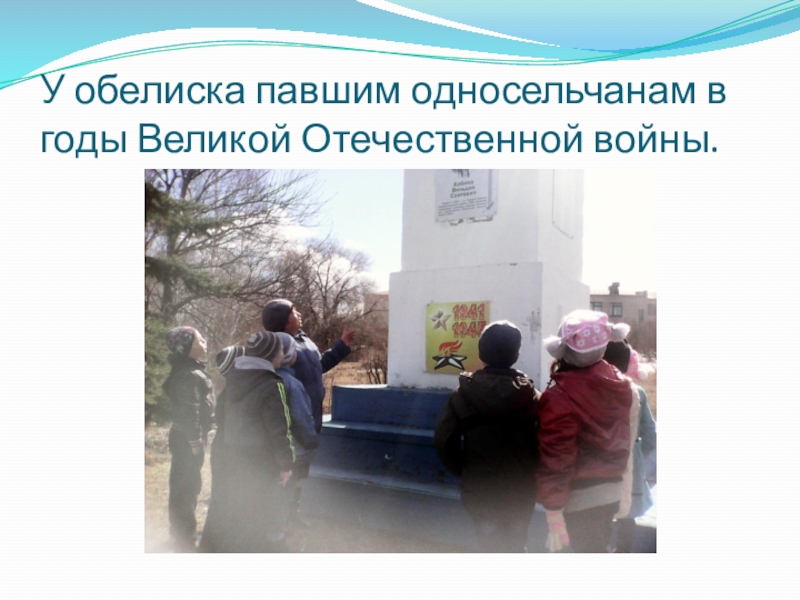 Слайд 39У обелиска павшим односельчанам в годы Великой Отечественной войны.