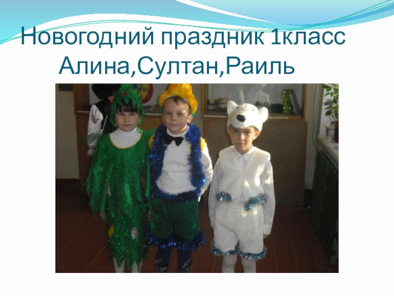 Слайд 13Новогодний праздник 1класс Алина,Султан,Раиль