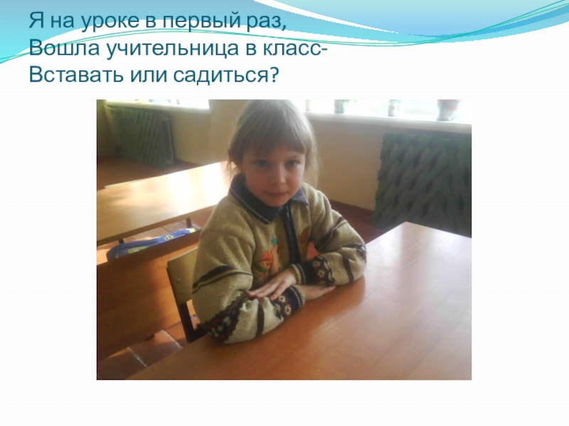 Слайд 38Я на уроке в первый раз, Вошла учительница в класс- Вставать или садиться?