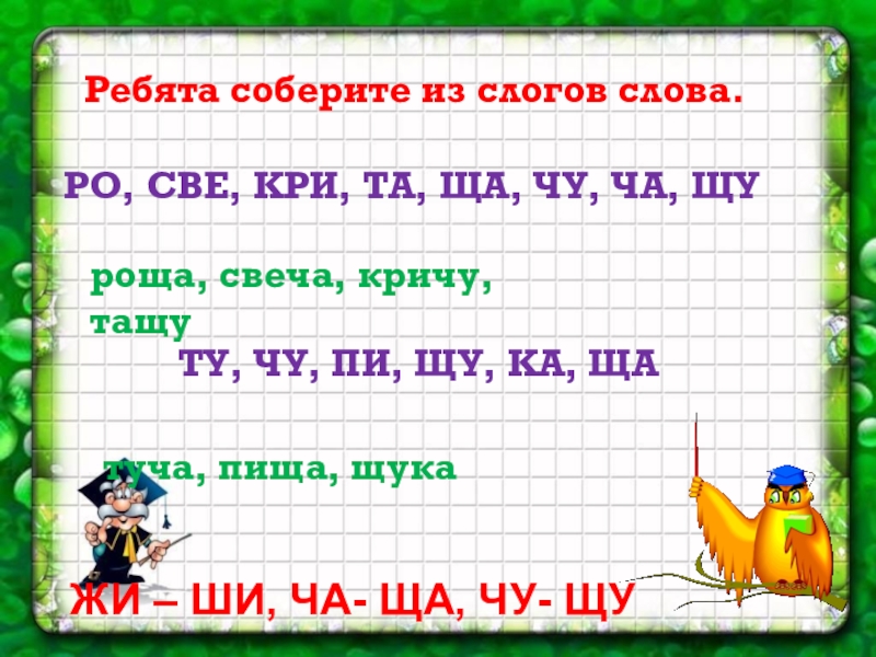 ЖИ – ШИ, ЧА- ЩА, ЧУ- ЩУ