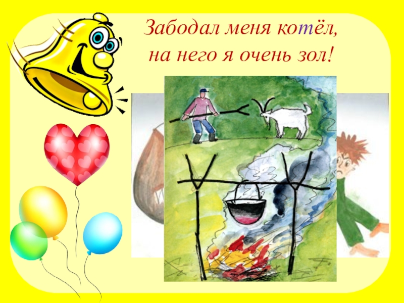 Слайд 20Забодал меня котёл, на него я очень зол!