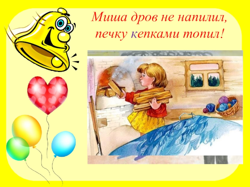 Слайд 17Миша дров не напилил, печку кепками топил!