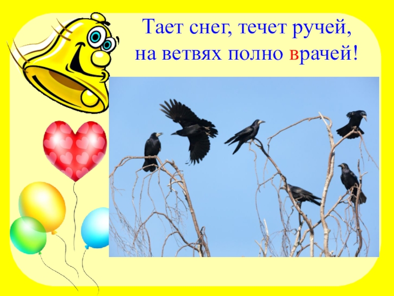 Слайд 14Тает снег, течет ручей, на ветвях полно врачей!