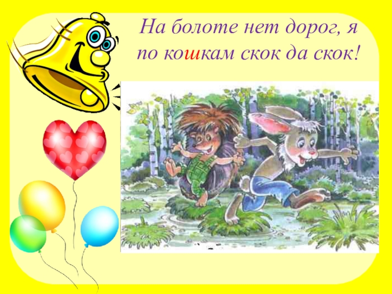 Слайд 19На болоте нет дорог, я по кошкам скок да скок!