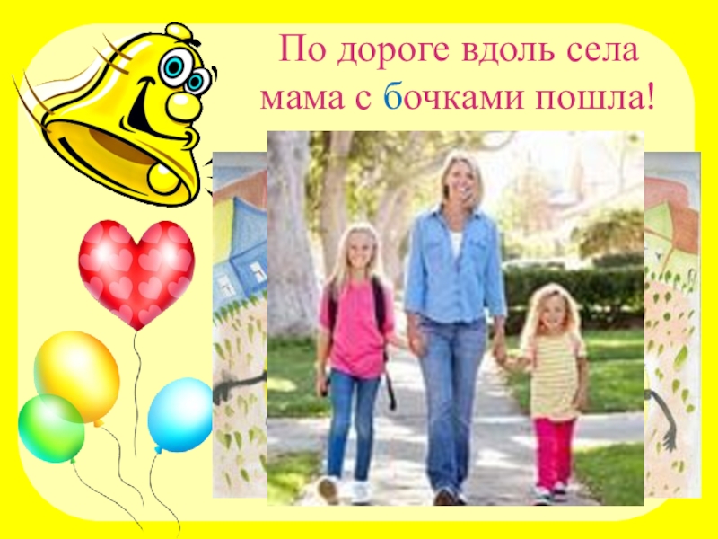 Слайд 15По дороге вдоль села мама с бочками пошла!