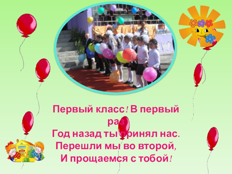 Первый класс! В первый раз  Год назад ты принял нас. Перешли мы во второй, И прощаемся