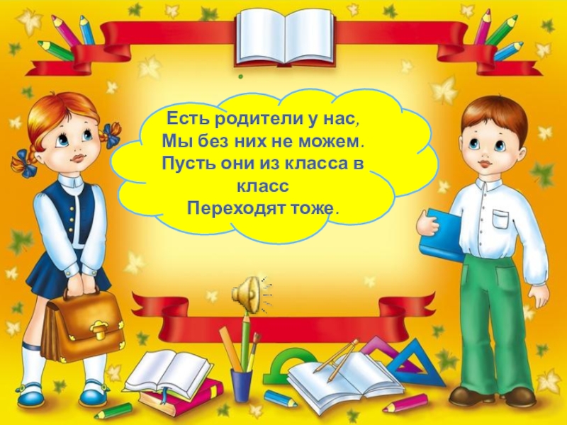 Есть родители у нас, Мы без них не можем. Пусть они из класса в класс Переходят тоже.