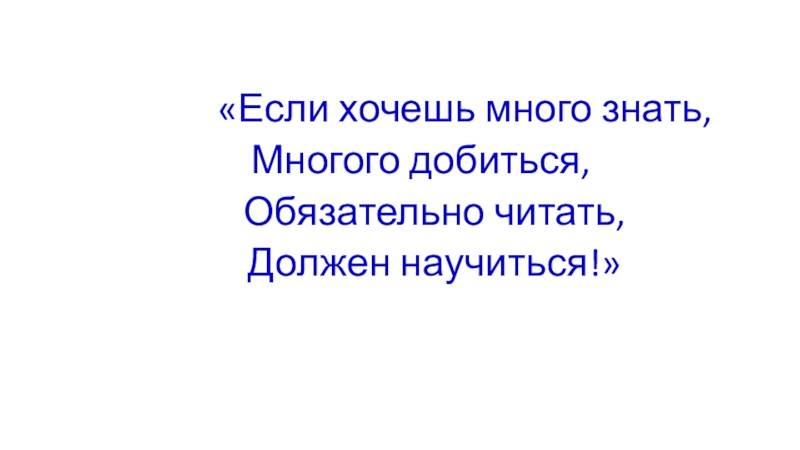 «Если хочешь много знать, Многого добиться, Обязательно читать, Должен научиться!»