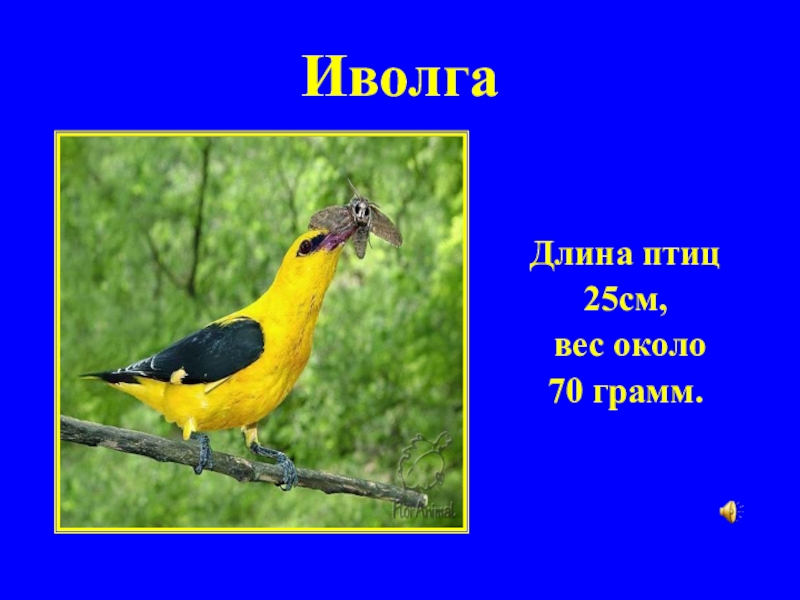 ИволгаДлина птиц25см, вес около 70 грамм.