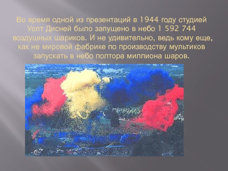 Во время одной из презентаций в 1944 году студией Уолт Дисней было запущено в небо 1 592