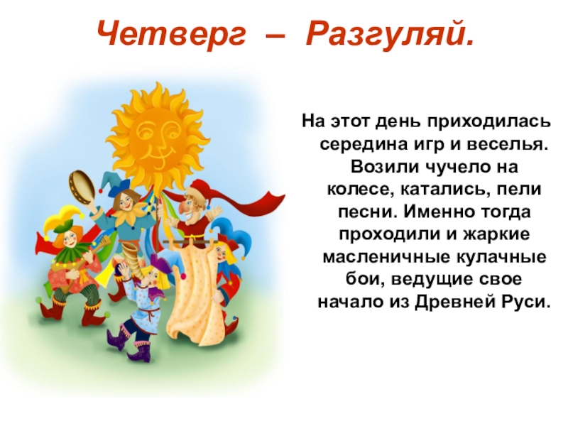 Слайд 7Четверг – Разгуляй.