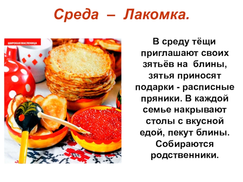 Слайд 6Среда – Лакомка.