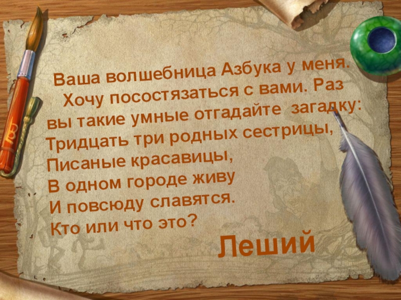 Это сайт презентаций, где можно хранить и обмениваться своими презентациями, докладами, проектами, шаблонами в формате PowerPoint с другими пользователями. Мы помогаем школьникам, студентам, учителям, преподавателям хранить и обмениваться учебными материалами.