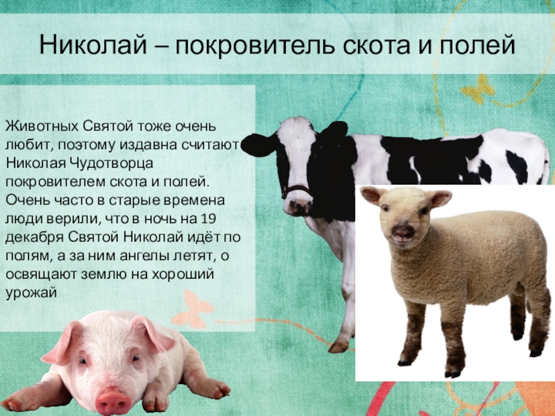 Слайд 3Николай – покровитель скота и полей