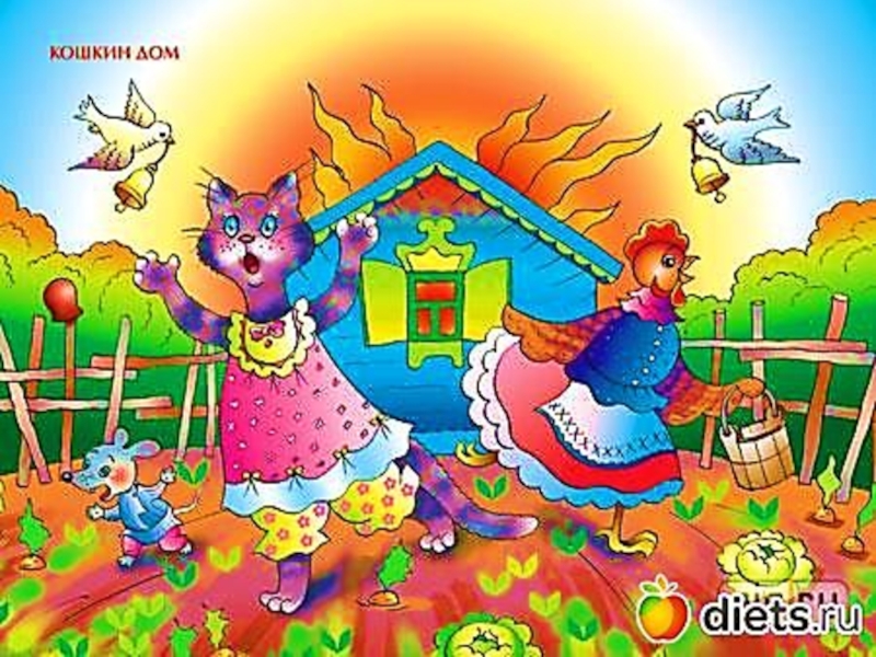 Унесла его лиса За далекие леса. Но придет на помощь кот, Своего дружка спасет! Открывай, лиса, мешок-