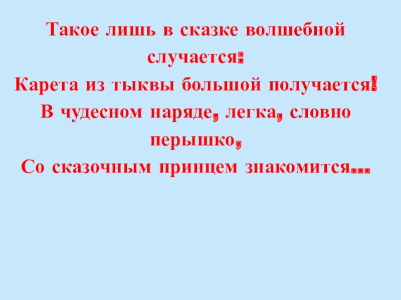 Слайд 23Такое лишь в сказке волшебной случается: Карета из тыквы большой получается! В чудесном