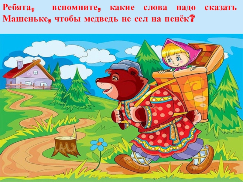 Ребята, вспомните, какие слова надо сказать Машеньке, чтобы медведь не сел на пенёк?