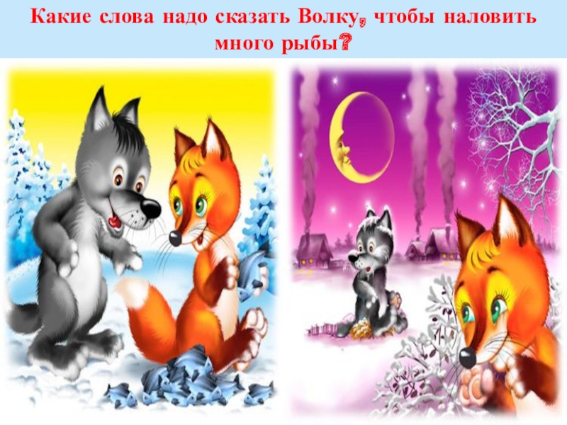 Слайд 38Какие слова надо сказать Волку, чтобы наловить много рыбы?