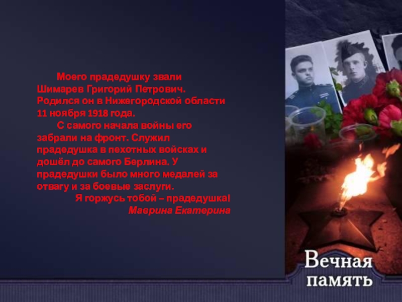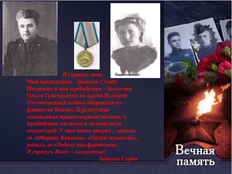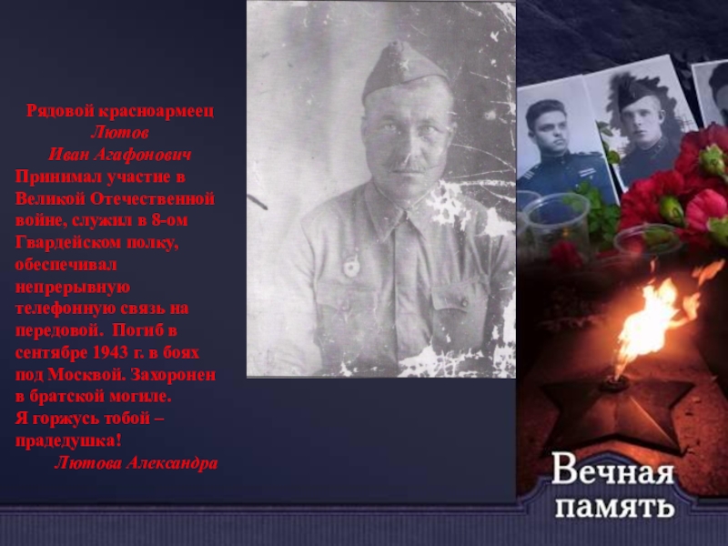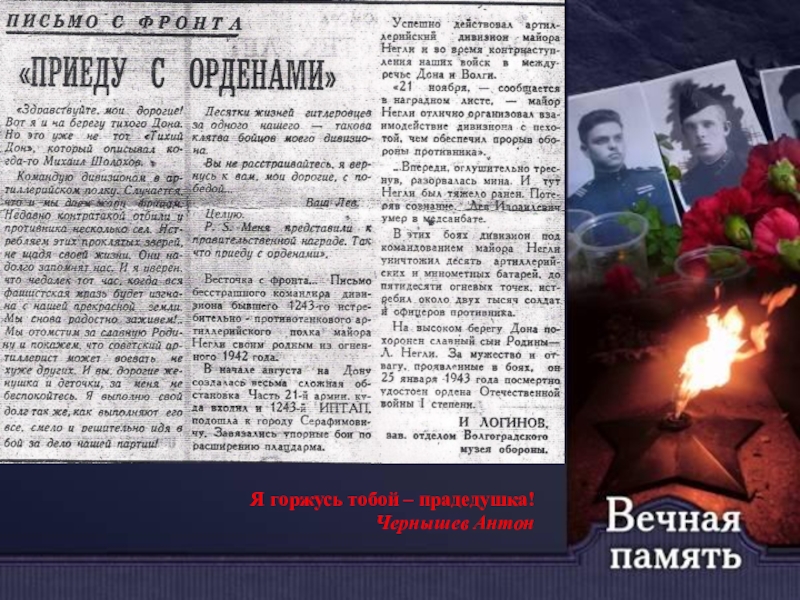 Советского Союза, является Иван Алексеевич Воробьёв. Летом 1942 г., когда враг рвался к Сталинграду, лётчик И. А. Воробьёв наносит свои бомбовые удары по фашистам. За образцовое выполнение заданий командования в боях на территории Украины и в Крыму, 19 августа 1944 г. ему было присвоено звание Героя Советского Союза.