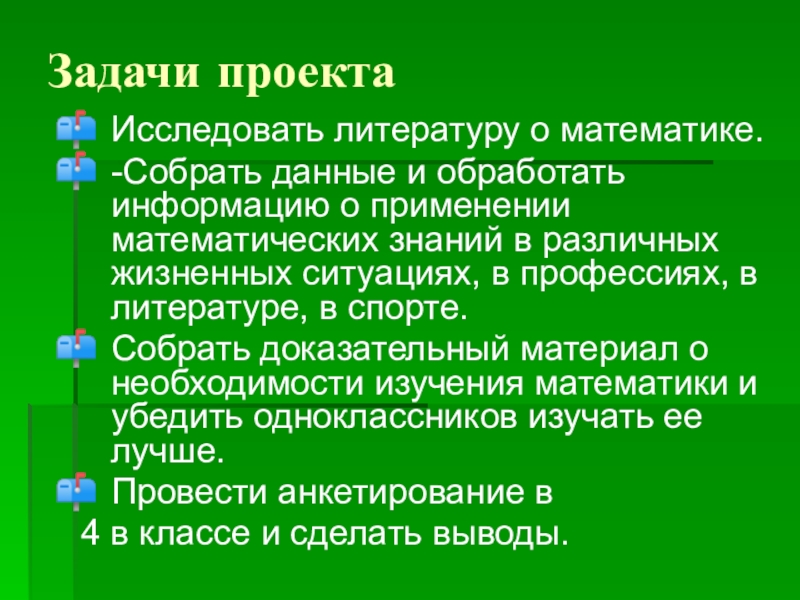 Собрать доказательный материал о необходимости изучения математики и убедить одноклассников изучать ее лучше.