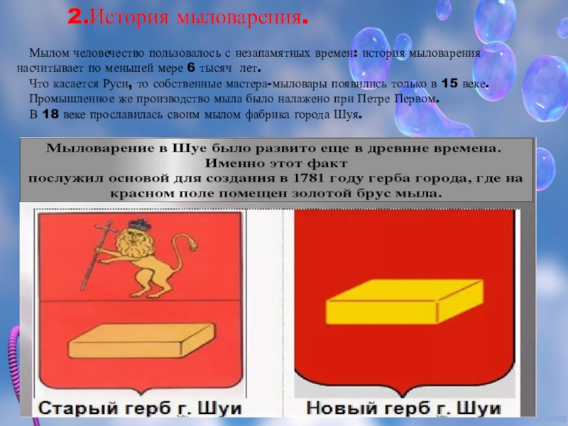 В 18 веке прославилась своим мылом фабрика города Шуя.