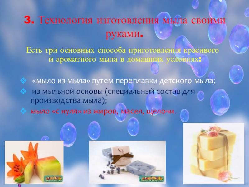 Слайд 7 Есть три основных способа приготовления красивого и ароматного мыла в