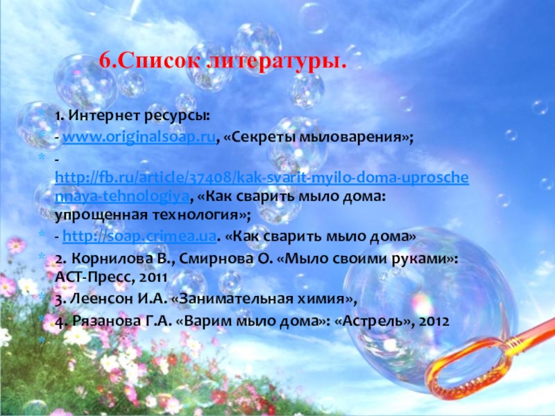 2. Корнилова В., Смирнова О. «Мыло своими руками»: АСТ-Пресс, 2011