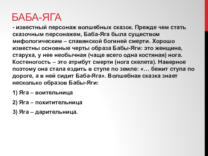 - известный персонаж волшебных сказок. Прежде чем стать сказочным персонажем, Баба-Яга