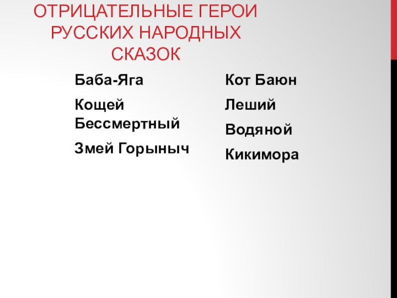 охарактеризовать главных мифических персонажей русских народных сказок;