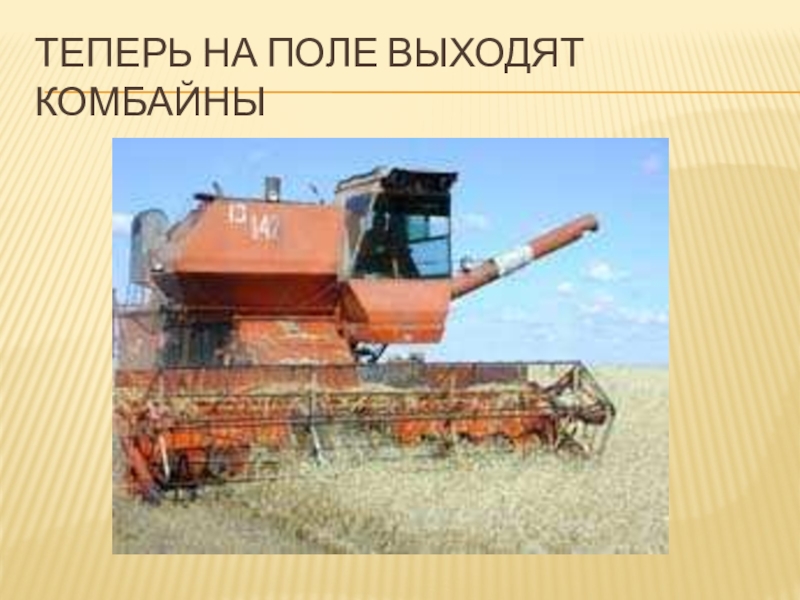 Слайд 6Теперь на поле выходят комбайны