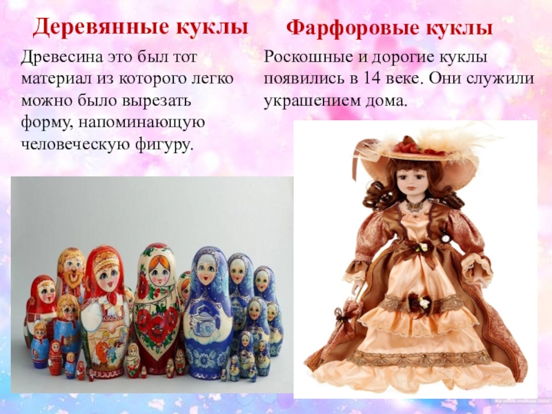 Роскошные и дорогие куклы появились в 14 веке. Они служили украшением дома.