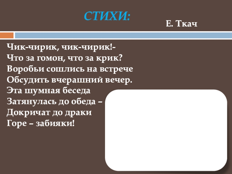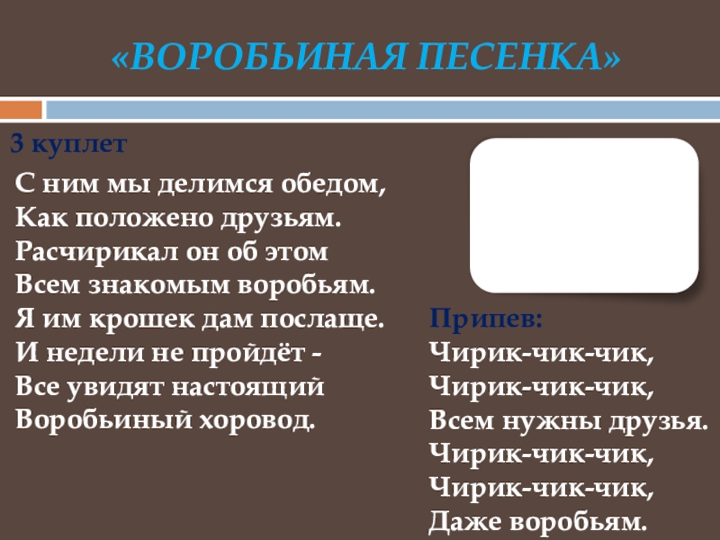 «ВОРОБЬИНАЯ ПЕСеНка»