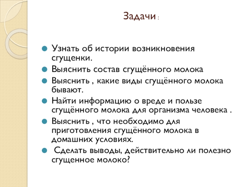 Исследовать и выяснить полезные свойства сгущенного молока для организма человека.